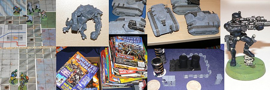It's been an eventful month for a change in my wargaming adventures. Firstly, JIK and Scooby have been helping with the early rules of the sci-fi dungeon game using old Space Crusade boards. I finally found the Island Of Blood Rat Ogre I wanted for my new Blood Bowl team. I managed to find time to scan any useful old stuff from my White Dwarfs and now they can go (and give me more room for new stuff!). Then my mate Chris offered to take us to Warhammer World for the first time. Cue rapid painting of Guard tanks so I didn't turn up with a completely unpainted force. The boards and armies I witnessed in Nottingham got me motivated on finishing my own terrain pieces, so am working on completing and expanding the old oil refinery I never finished. Then, with the annual Winter Wave approaching, I quickly slapped some paint on my Vindicare after selecting it for the battle.