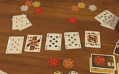 Co-operative card game where players have to silently and secretly arrange their poker hands in order of power.