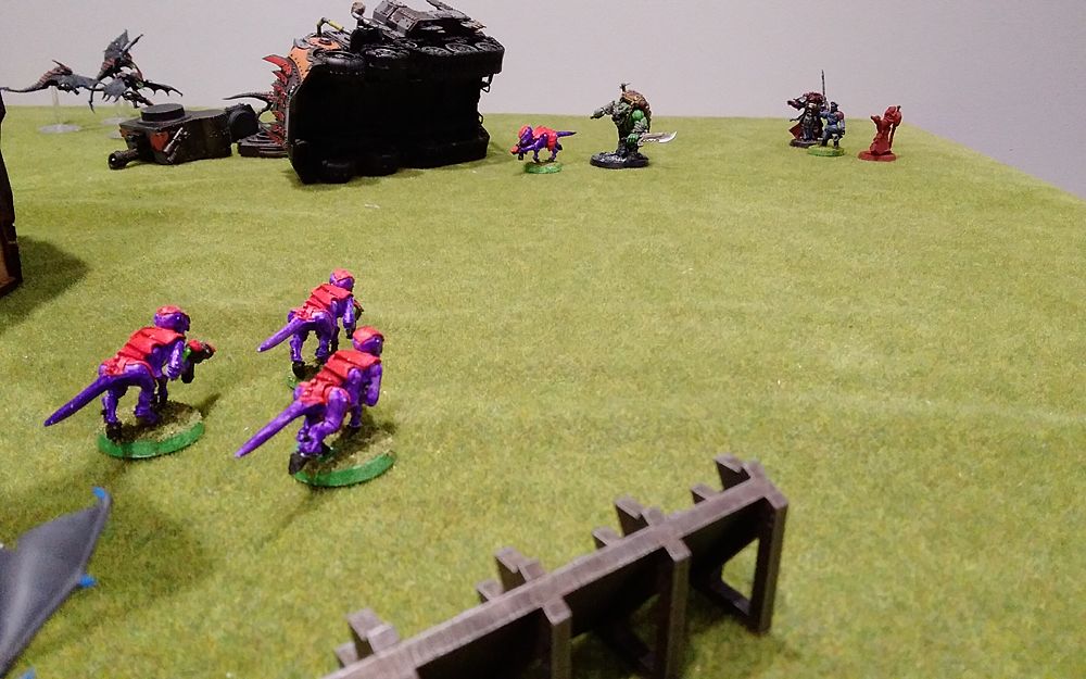 Now Scoob's game room is ready for some action, we've played a couple of games of our 40K-S rules. It's been quite a while since we've mucked about with them, so it was about time we started to evaluate whether or not it is a rule set that we should keep developing.