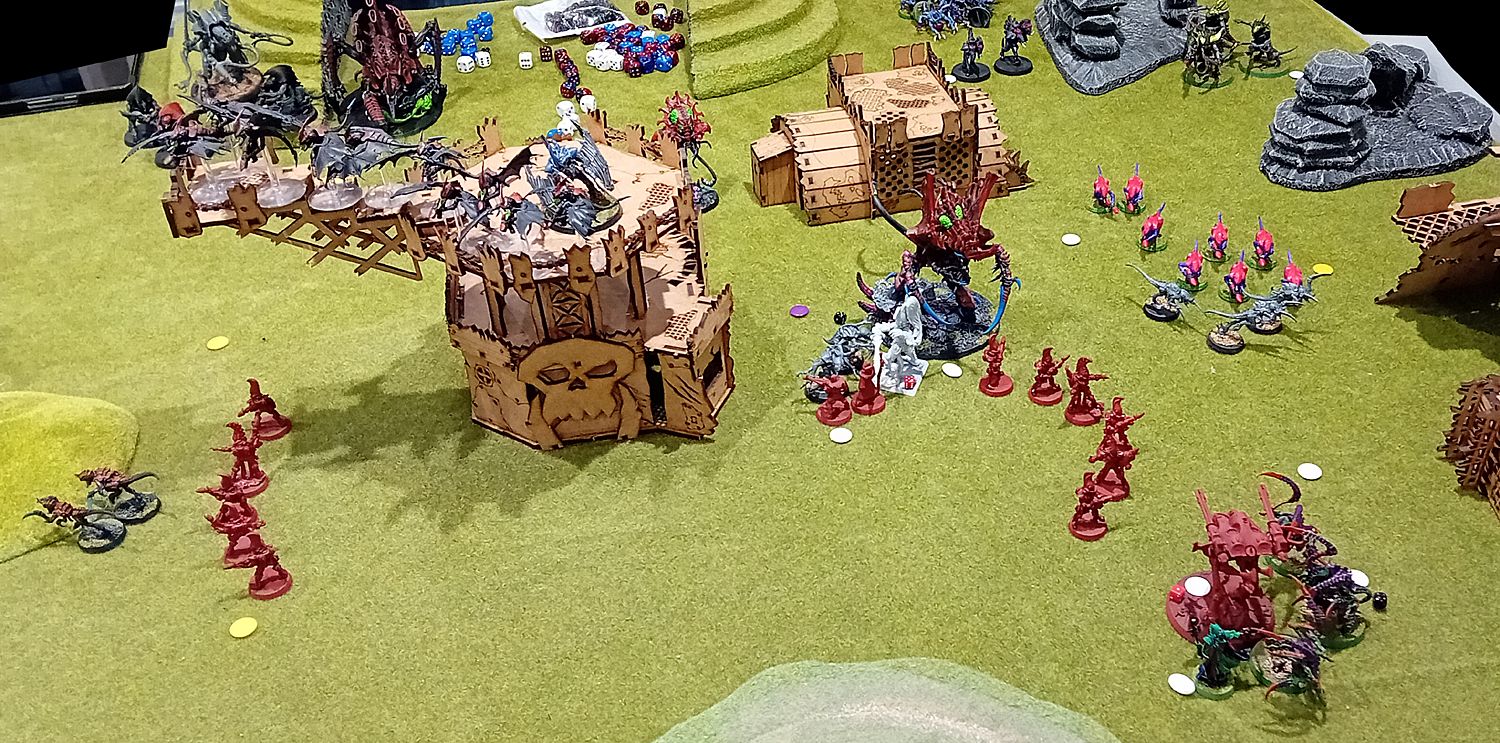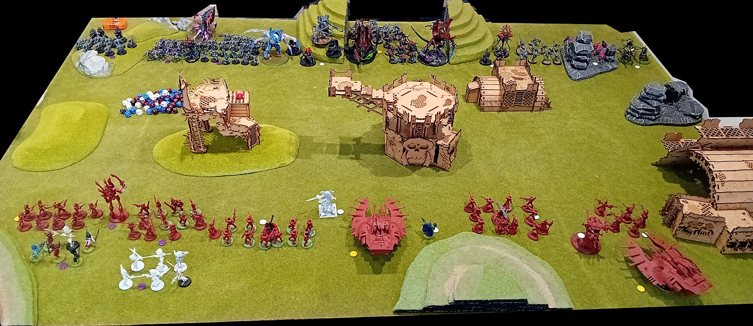 In a roughly 2800pt game, I saw myself commanding my entire current Eldar force, minus Lelith Hesperax, against pretty much all of Scoob's Tyranids.