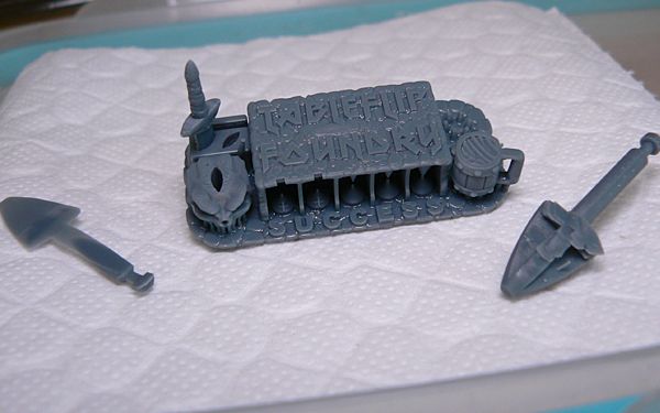 Then it was onto the worst thing I had to endure during this first effort, and that was scraping the items off of the build plate and cleaning everything up. The IPA I was using for the cleaning stank much worse than the resin, even through my fancy new respirator.
