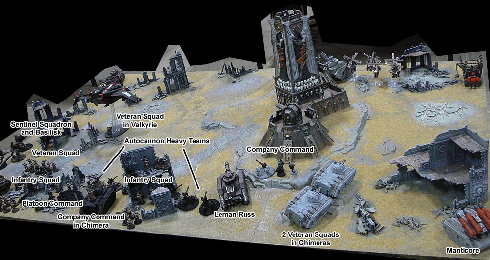 Me and Scooby tried something like this a long while ago playing Epic Space Marine, where my Guard and his Squats sat there and shot the crap out of the Nidz as they ran the length of our 7 foot board to try and get at us. In a way it was too easy, as because nobody was controlling the Nidz we decided they would all automatically attack the closest target. The automatic Nid behaviour would also have to happen this time, but to make things much more interesting we decided we will not just be able to sit back and fire at the approaching hordes. Instead, we have given ourselves a little objective.